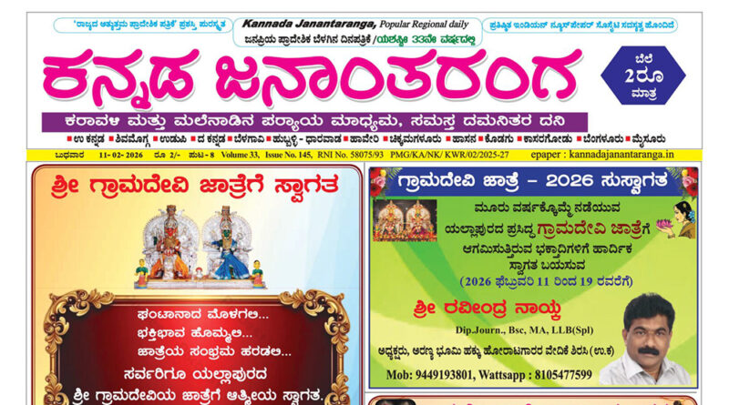 Kumta Edition - Kannada Janantaranga 14/02/2026 Karavali Ale Team 6 February, 2026 | Kannada Janantaranga Read More